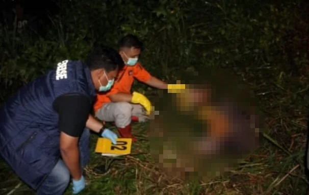 Tak jauh dari lokasi penemuan sepeda motor, korban akhirnya ditemukan di lahan kosong yang dipenuhi semak-semak.